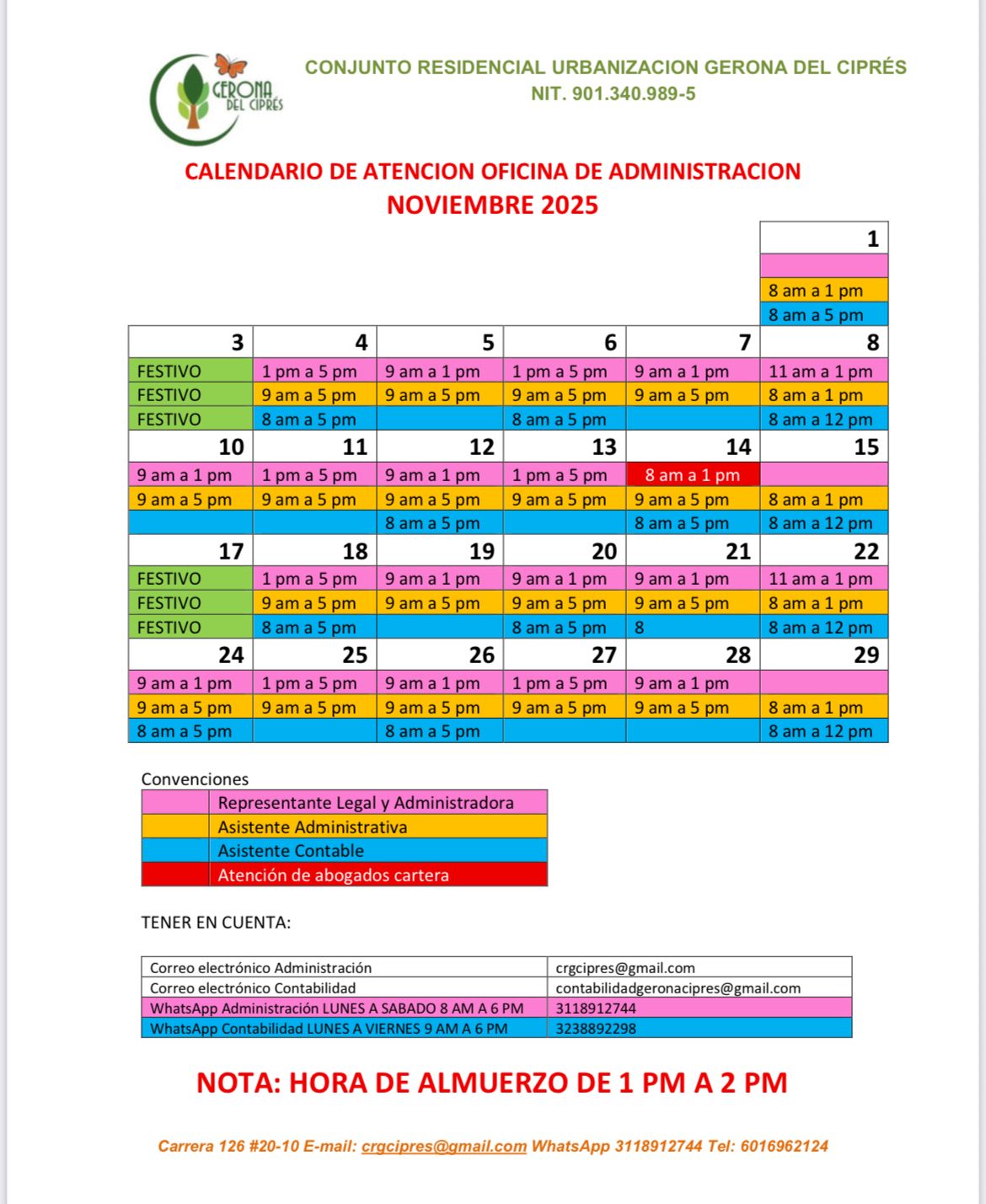Nuestro compromiso es brindarle un servicio de calidad. Aquí encontrará toda la información que necesita para ponerse en contacto con nuestro equipo de administración, conocer nuestros horarios de atención y acceder a los procedimientos que facilitarán su vida en el conjunto residencial.